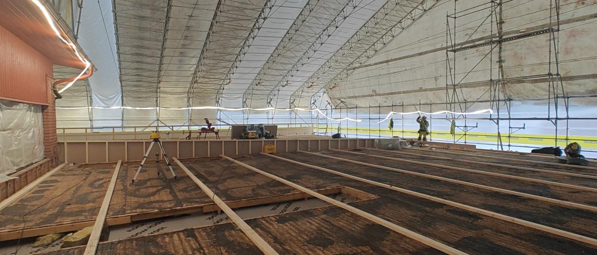 Taivalkosken kirjaston vesikattosaneeraus työmaa on käynnissä